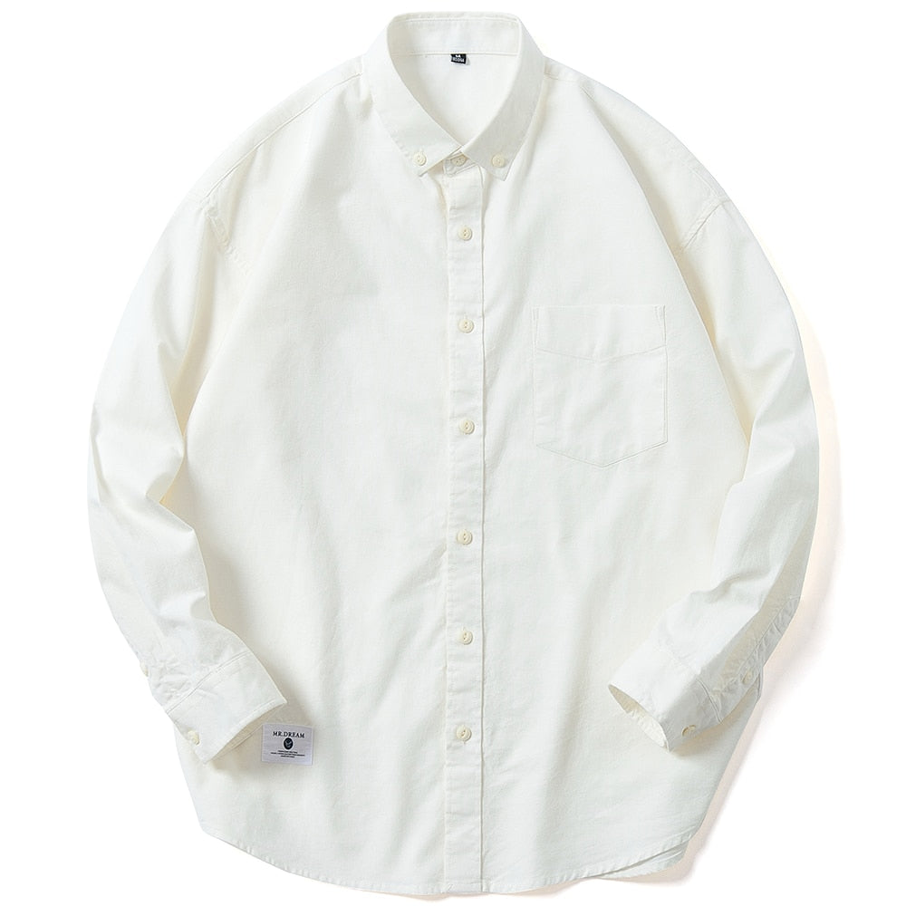 Casual 100% Cotton Oxford Men's Shirt Milk Slim Fit Fashion Design Long Sleeve Breathable